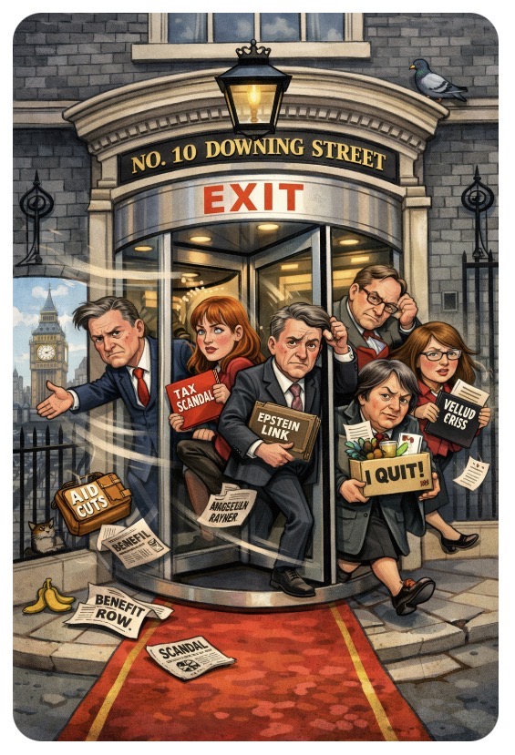 🚪💼When a government starts to look less like a stable administration and more like a reality TV elimination round, people tend to notice. Since 2024, Keir Starmer’s team has seen a steady procession of exits—some dramatic, some awkward, and some suspiciously timed. Whether it’s scandal, principle, or just political musical chairs, the churn is real… and it’s getting harder to ignore.