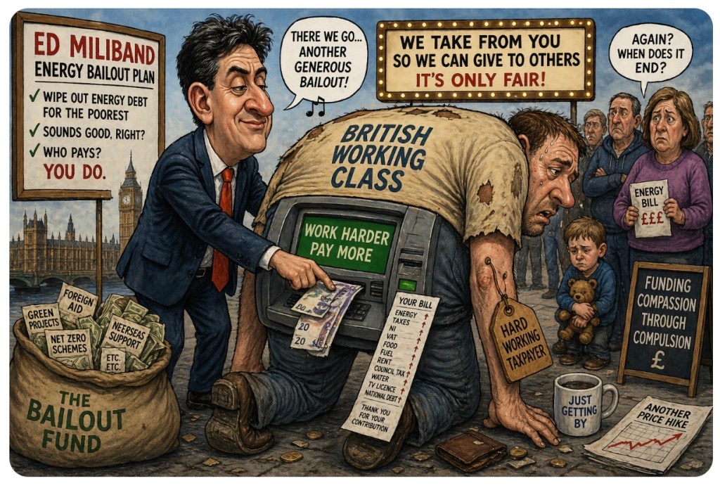 Another day, another grand political “rescue plan”—and somehow, like clockwork, the invoice lands squarely on the doormat of ordinary working people. This time, it’s Ed Miliband stepping up with a proposal to wipe energy debt for the poorest households. Sounds compassionate. Sounds necessary. Sounds… expensive. And not in a way that disappears into thin air.