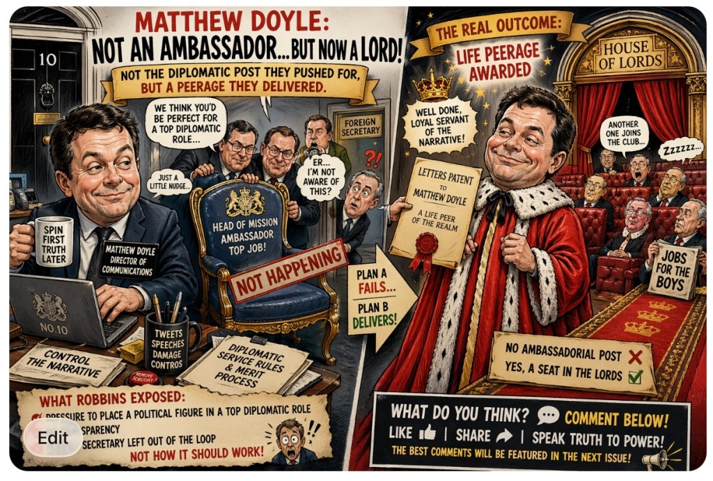 When the dust settled on the Westminster whisper-fest, one thing became painfully clear: Matthew Doyle didn’t quite land the globe-trotting diplomat gig some insiders hinted at. No embassy keys. No ambassadorial residence. No awkward small talk in Parisian reception halls.