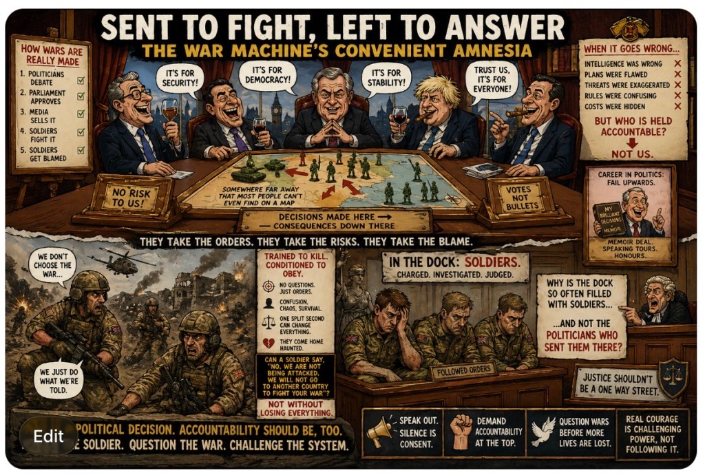 Let’s not dress this up. Soldiers don’t freelance foreign policy. They don’t wake up and think, “Today I’ll invade a country.” They follow orders—orders crafted in quiet offices, far from the heat, fear, and chaos of the battlefield.