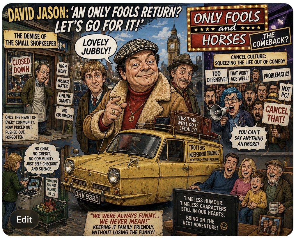 Take it to the blog comments—proper debate, not just nostalgia. We want your best takes, your boldest ideas, and your funniest “modern Del Boy” scenarios. 💬🔥