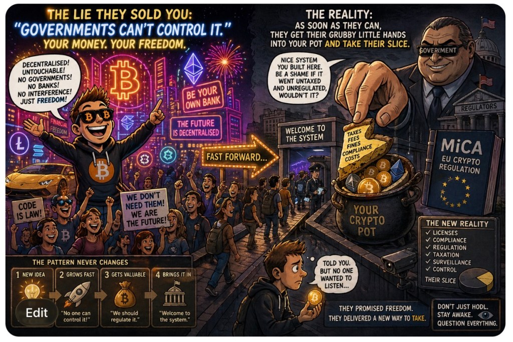 The dream didn’t collapse overnight—it matured. And the moment crypto started looking less like rebellion and more like revenue, regulators stepped in.