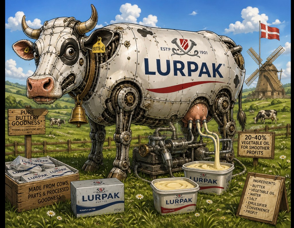 Meanwhile, the packaging whispers sweet nothings about “Danish heritage” and rustic farms, while quietly dodging the fact that your toast topper has more in common with a lab experiment than a churn.