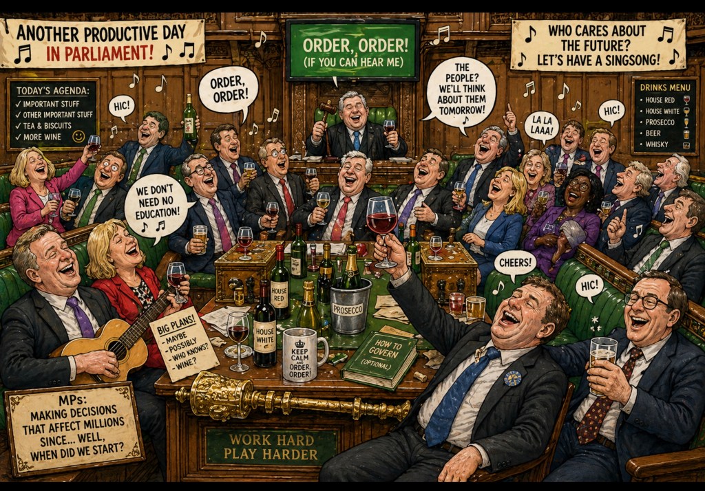 So here we are. The people steering the country—drafting laws, debating futures, shaping livelihoods—might be doing it with the subtle finesse of someone who’s just absolutely demolished a bottle of Merlot.
