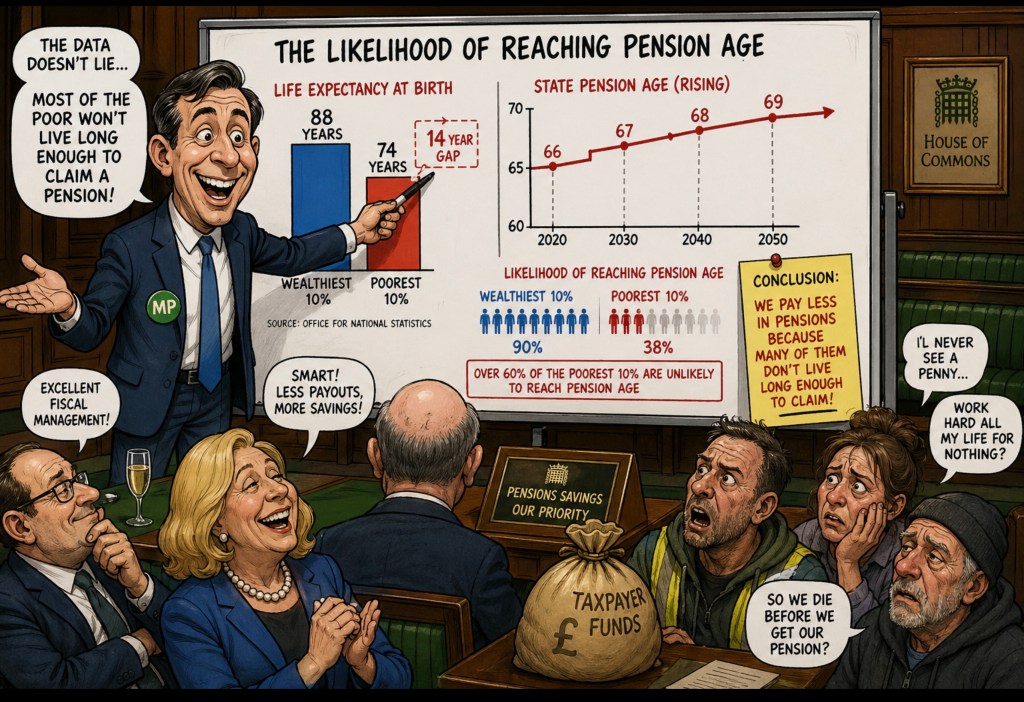 In a plot twist so bleak it makes dystopian fiction look optimistic, life expectancy for poorer communities is falling—while the pension age is rising. It’s almost as if the system has discovered the ultimate cost-saving strategy: make sure the people who need pensions the most… don’t live long enough to claim them. Efficient? Absolutely. Ethical? Let’s not ruin the mood.