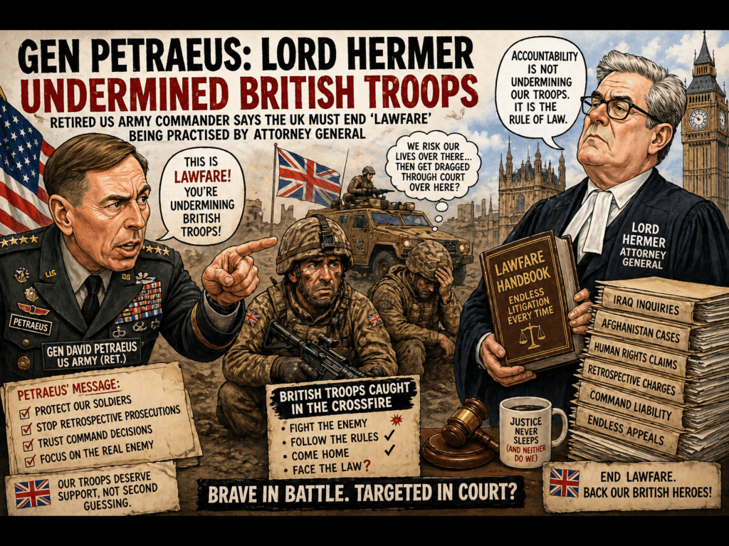 Ah yes, βlawfareββthe idea that legal systems are being weaponised against soldiers after the dust of war settles. According to Petraeus, the UK risks tying its own troops in knots with endless legal scrutiny, second-guessing battlefield decisions from the comfort of a courtroom years later.